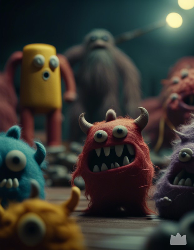 Felt monsters in a movie scene and dramatic lighting, 4k image, shot from a movie, cinematic composition shot, incredibly detailed, post - production, depth of field, movie, cinematography, cinematic, color grading, professional color grading,