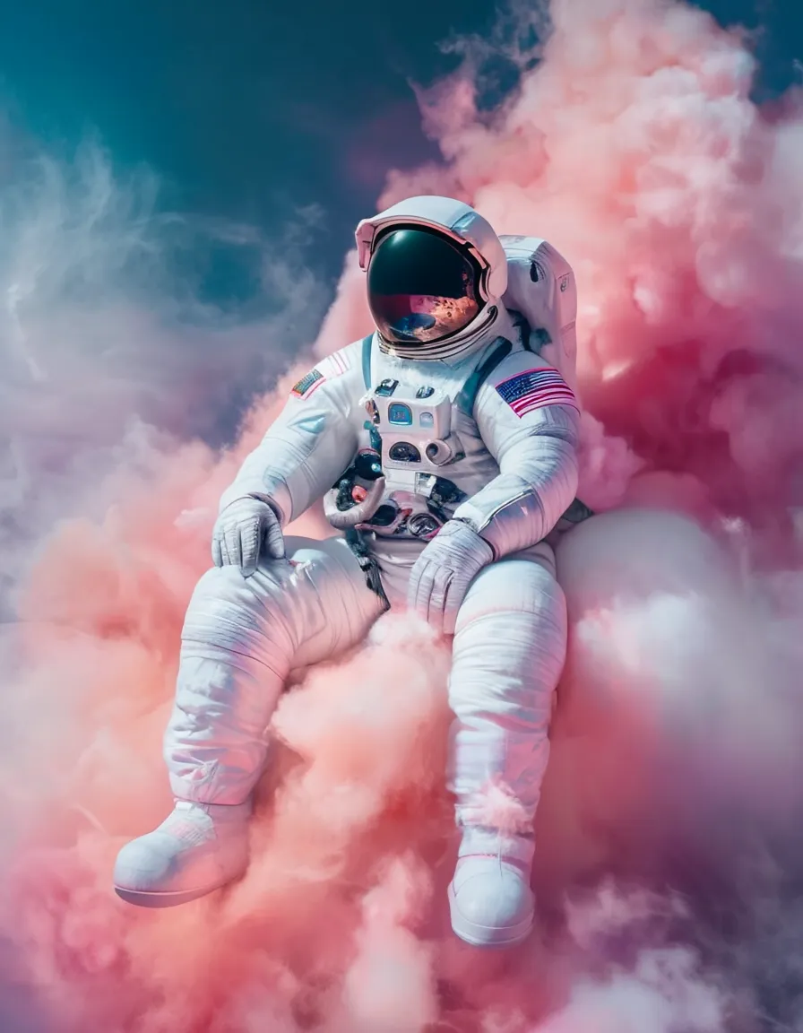 Astronaut sitting far on a cotton candy